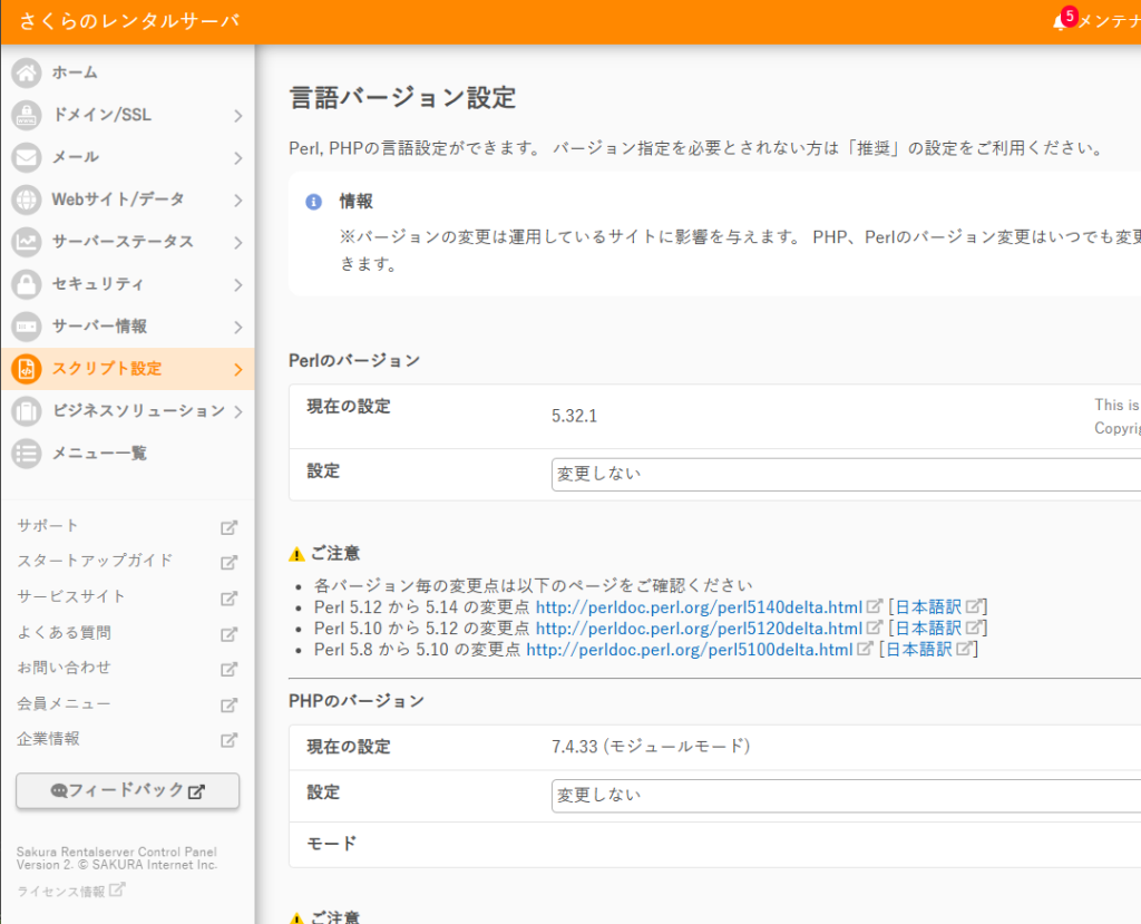 左メニューから「スクリプト設定」>「言語バージョン設定」を選びます。